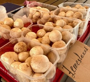 Auch Birkenpilze, Rotkappen, Reizker und Täublinge hat Thomas bei seiner Reise Anfang August auf den Märkten gesehen; es war wohl gerade keine Steinpilz-Zeit. Eine Kuriosität sind "Hexeneier", also die "ungeschlüpften" Stinkmorcheln, welche als Heilmittel zu einem vergleichsweise hohen Preis von 18 Euro die Schale angeboten werden.