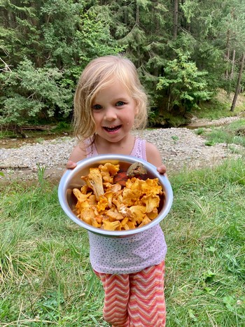 Zurück in Bulgarien, besuchten wir das Rila-Gebirge. Hier war der Boden feuchter und ich konnte an einem Nachmittag bei einem kurzen Sprung in den Wald ein wahres Pilzmeer entdecken. Mit Janosch auf dem Arm konnte ich allerdings nur sieben schöne Steinpilze mitnehmen.