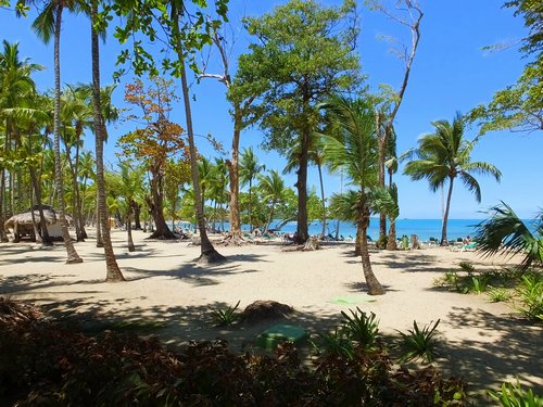 ich war in der Dominikanischen Republik im Urlaub. Und wie ich da so am Strand entlangspaziere, da sehe ich am Fuß einer Kokospalme - die Kleine, rechts im Vordergrund des zweiten Fotos - nur wenige Meter vom Meer entfernt, etwas Helles leuchten.