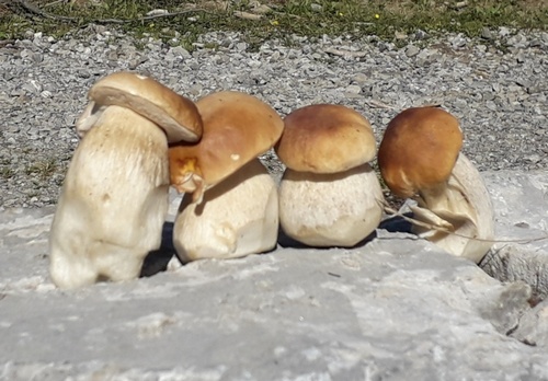 Foto: Diese vier Steinpilze sind der Fund der zweiten Etappe von Gunter und Sibylle. Gunter dazu: »Jetzt weiß ich auch, warum die Steinpilze heißen.«