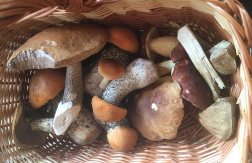 hier noch ein kleiner Nachtrag. Unser Ferienhausvermieter lud uns zum Ende unseres Urlaubs auf eine schnelle Pilzrunde ein, auf der wir unseren Korb ganz gut füllen konnten.