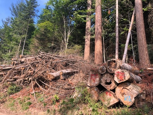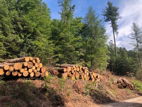 An den großen Lagerplätzen der geschnittenen Bäume war ersichtlich, dass von etwa 50 Stämmen nur drei Stück innerhalb faulig waren. Leider muss der Mensch ja immer eingreifen in die Natur weil diese sich (anscheinend) ja nicht selbst nicht helfen kann.